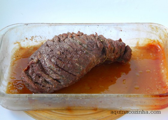 Essa é uma opção muito boa para fazer no fim de semana. Quer aproveitar para fazer essa carne assada nesse fim de semana então compra os ingredientes e mãos à obra. Dá para você deixar ela no tempero no sábado e no domingo só coloca no forno.