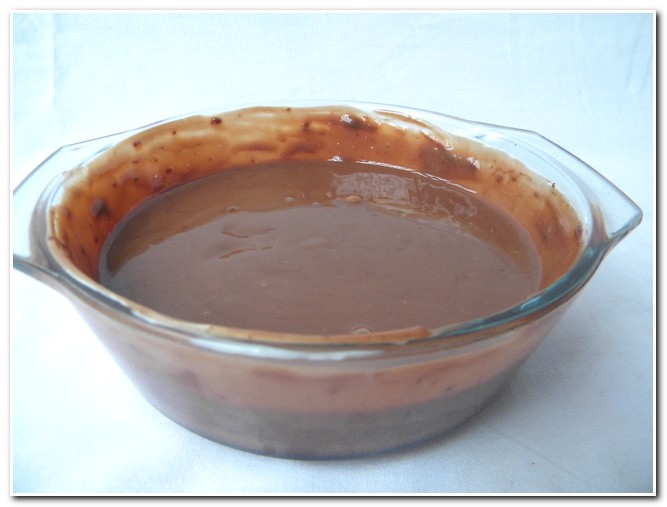 - Quando o creme de leite estiver quente, coloque o chocolate picado dentro dele e mexa bem até o chocolate derreter completamente. Reserve.
