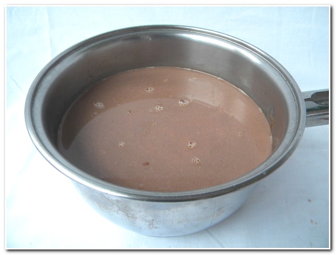 - Coloque o leite em uma panela e leve para ferver. Assim que ferver, retire do fogo e misture o chocolate que foi dissolvido com o creme de leite. Misture tudo muito bem até ficar homogêneo.