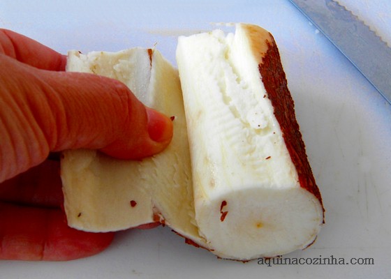 Ah! Aprendi como se retira a casca mais facilmente e também como reconhecer uma mandioca boa pela polpa.