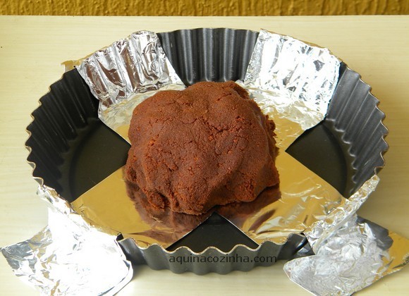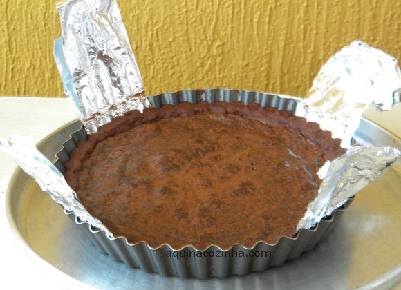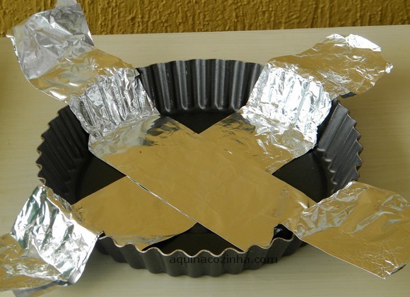 - Separe uma forma rasa de torta e papel alumínio (ou papel manteiga);