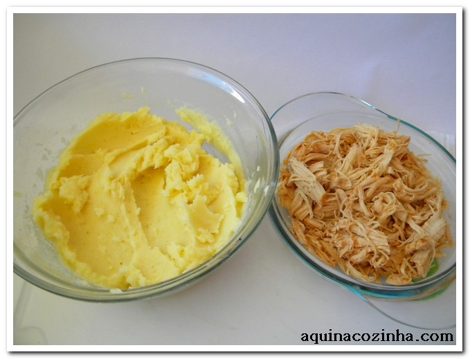 - Para fazer essa receita dá para você aproveitar um resto de purê que tenha sobrado e usar o frango (assado ou cozido). É só desfiar e usar.