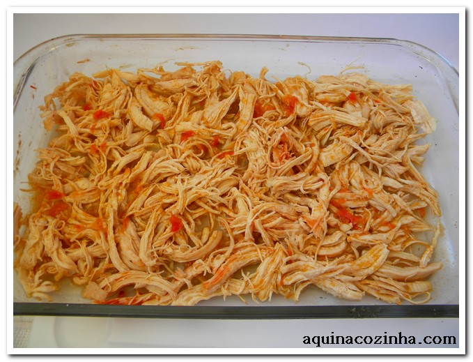 - Vou usar frango desfiado, clique e veja como desfiei mais facilmente: