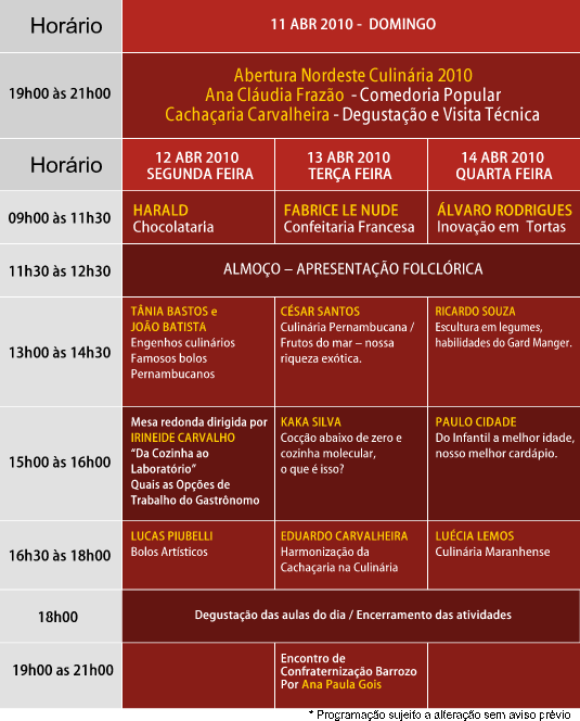 Está aí a programação técnica: