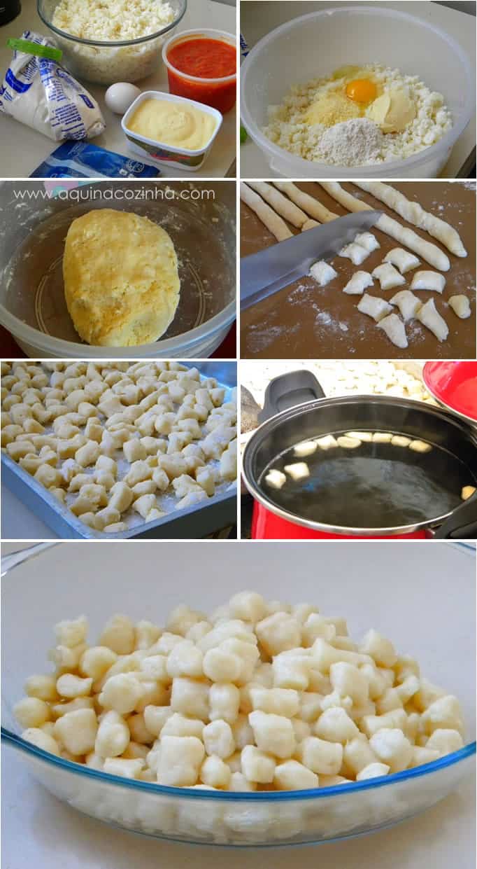 - Tenha um pouco mais de farinha para poder espalhar na mesa na hora de abrir os rolinhos e também para quando for cortando ir polvilhando sobre os nhoques para eles não grudarem.