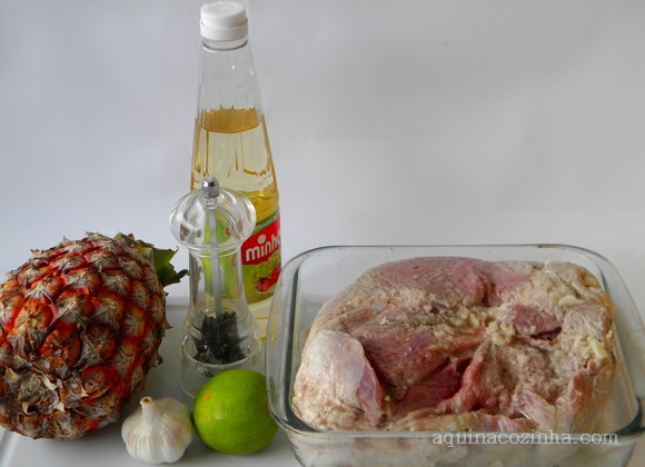 No fim da semana passada preparei aqui em casa esse Pernil Assado com Abacaxi, ele é muito fácil de fazer. Eu sei que tem gente, principalmente quem não tem muito traquejo na cozinha, que tem receio de fazer uma carne assada. Mas, com essa receita qualquer pessoa pode fazer. Que tal preparar essa receita para o próximo almoço em família? Você vai surpreender a todos, eu garanto.