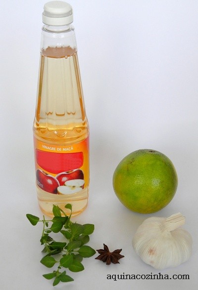 Para falar a verdade nunca fui muito fã de vinagre, mas faz uns dois anos que o médico recomendou a meu marido usar o vinagre de maçã pelos benefícios que ele traz. Fui pesquisar e pasmem, o vinagre é realmente cheio de benefícios para a nossa saúde. Ele tem muitos elementos nutritivos importantes, minerais, vitaminas, ácidos essenciais e enzimas. É muito bom para várias doenças e ótimo para EMAGRECER. Uau. Minha dica é, incorpore o uso do vinagre no seu dia a dia. E para variar o sabor procure aromatizar. Dá para aromatizar com vários sabores, eu fiz esse: