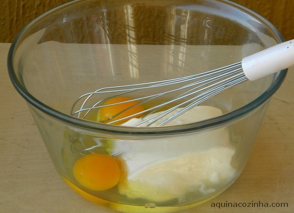 - Com um garfo ou um fouet misture o ovo e o creme de leite. Tempere com sal.