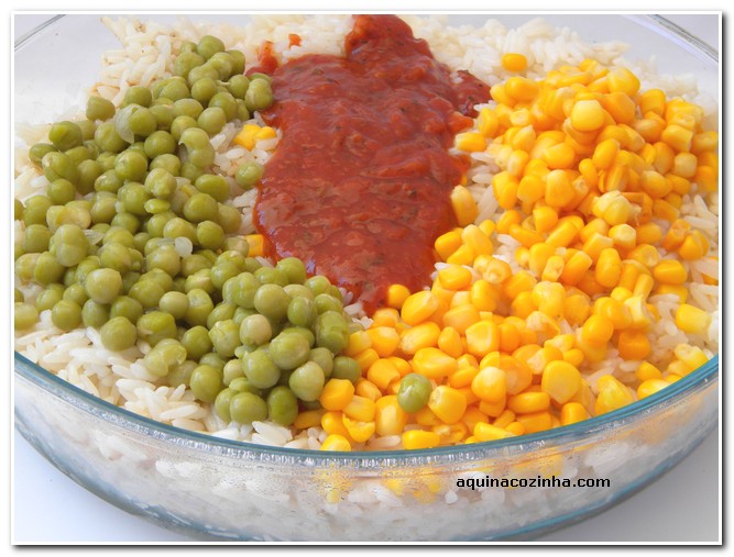 Mas tenho uma dúvida , esse milho verde com molho de tomate mistura com o arroz?