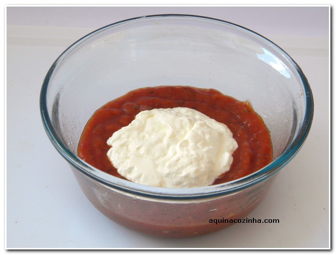 Ou deixa por cima como o molho de tomate e creme de leite?