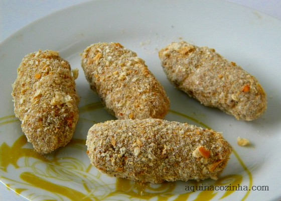 Observação: Eu gosto de fazer a farinha de rosca em casa, pois deixo ela mais fina ou mais grosseira, dependendo do meu gosto. Se você quiser fazer em casa, veja esse post: