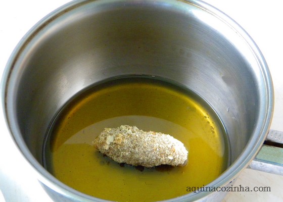 - Use uma panela pequena para fritar, assim você coloca mais óleo, deixando o croquete praticamente submerso, assim ele fica bem sequinho.