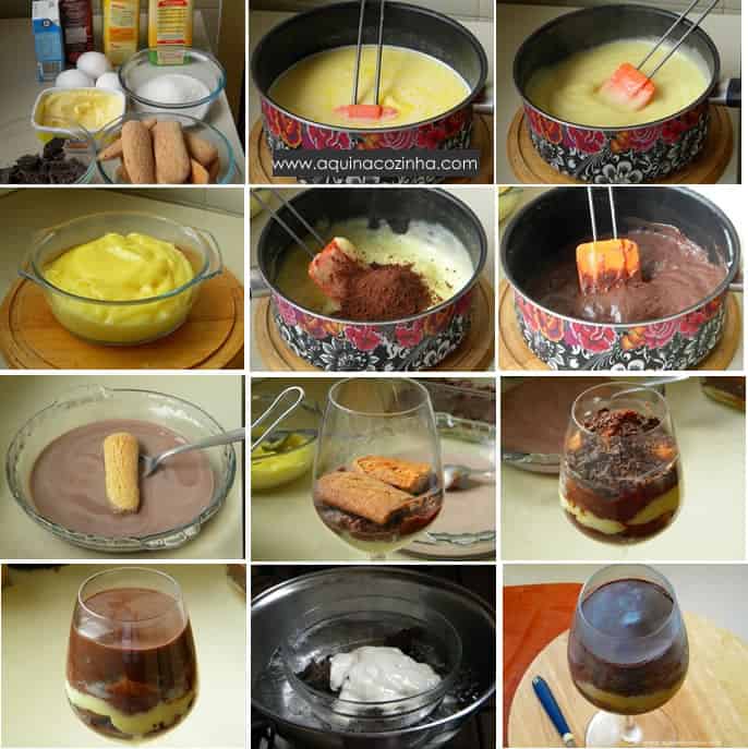 - Camada – Biscoito champanhe umedecido no leite com cacau