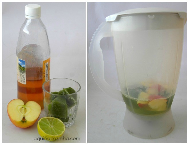 Ana eu coloco 1 pepino e 1 maço de couve e água suficiente para bater.