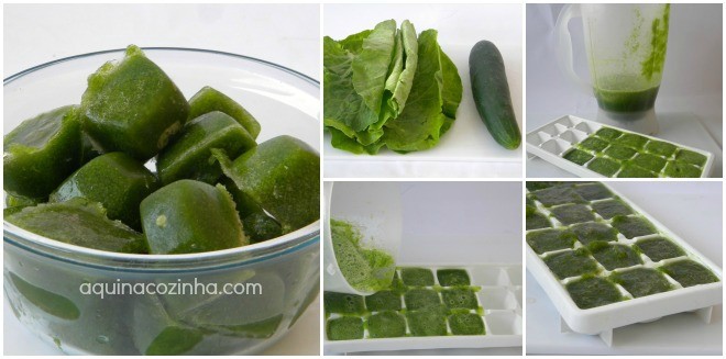 Observação: Eu sempre acho meio complicado quando tenho que higienizar as folhas na hora de fazer o suco. Isso porque eu tomo o suco logo que acordo. Então, eu já deixo a parte mais complicada adiantada. Isto é, eu faço gelinhos com a couve e o pepino e na hora de fazer o suco, uso os gelinhos. Veja como faço: