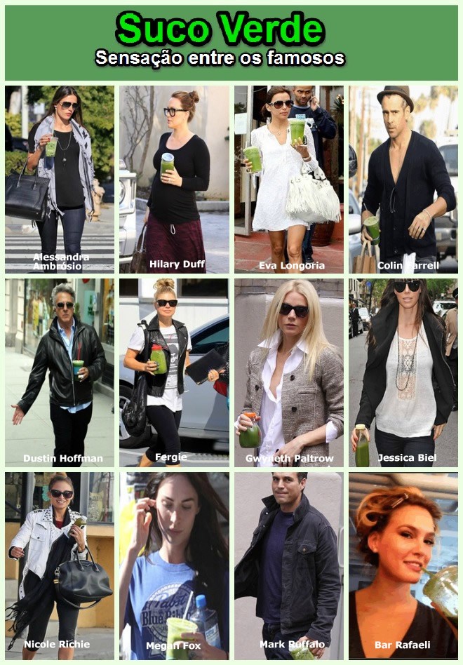 Suco detox, suco verde, cada vez mais ouvimos falar deste tipo de suco. Eu, desde o começo do ano, quando resolvi fazer uma alimentação mais saudável, me rendi a eles. Vou mostrar hoje aqui a minha receita de suco verde ou suco detox. Tem várias receitas que vi por aí, inclusive tem duas bem famosas, a do Dr. Oz e a da nutricionista queridinha das celebridades Kimberly Snyder. Aqui no Brasil alguns famosos também estão se rendendo aos benefícios do suco verde, como Flávia Alessandra, Mariana Ximenes e Cristiana Oliveira.