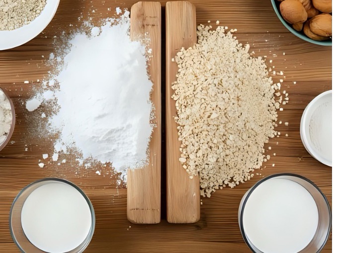 Combine farinhas: Misturar 2-3 tipos diferentes dá melhor textura e sabor. Exemplo: 50% farinha de aveia + 30% farinha de arroz + 20% fécula de batata.