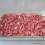 - Não gosto de colocar o presunto em fatias porque fica mais difícil na hora de cortar e servir, por isso prefiro picar.