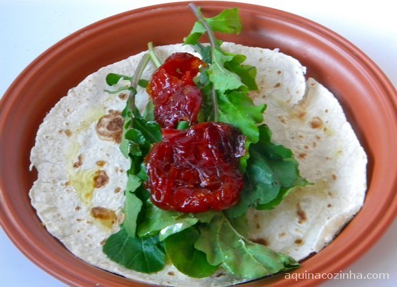 Wrap nada mais é do que um sanduíche enrolado e minha sugestão hoje é o Wrap de Rúcula e Tomate Seco, simples de fazer, delicioso e alimenta.